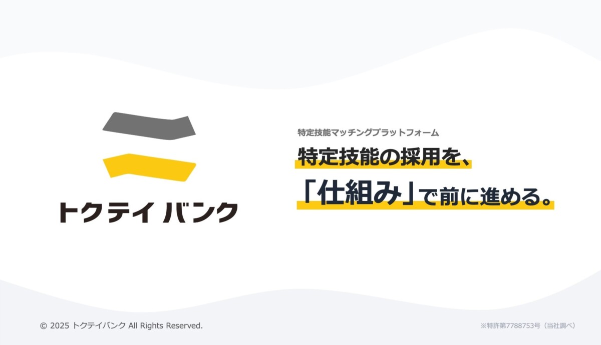 ■特定技能に特化したマッチングプラットフォーム「トクテイバンク」(特許第7788753、特許登録日:2025年12月11日)